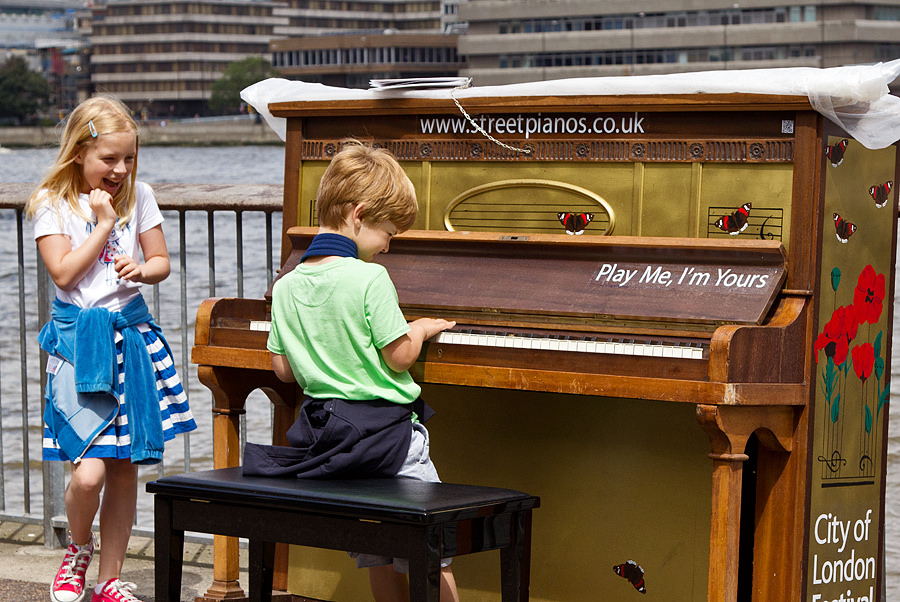 Play me, I’m Yours là một phong trào được Luke Jerram khởi xướng vào năm 2008 ở Birmingham, Anh Quốc, với ý tưởng ban đầu là thu thập những chiếc đàn piano cũ, sửa chữa, trang trí lại và đặt tại các địa điểm công cộng để mọi người có thể tự do chơi bất kỳ thể loại nhạc, bất kỳ bản nhạc nào mình thích. Luke Jerram giải thích, ông nhận thấy hàng ngày, tại những nơi công cộng, mọi người vẫn đi lướt qua nhau mà không hề nói chuyện với nhau. Âm nhạc sẽ kéo mọi người lại gần nhau hơn, thúc đẩy những cuộc trò chuyện, giao lưu.