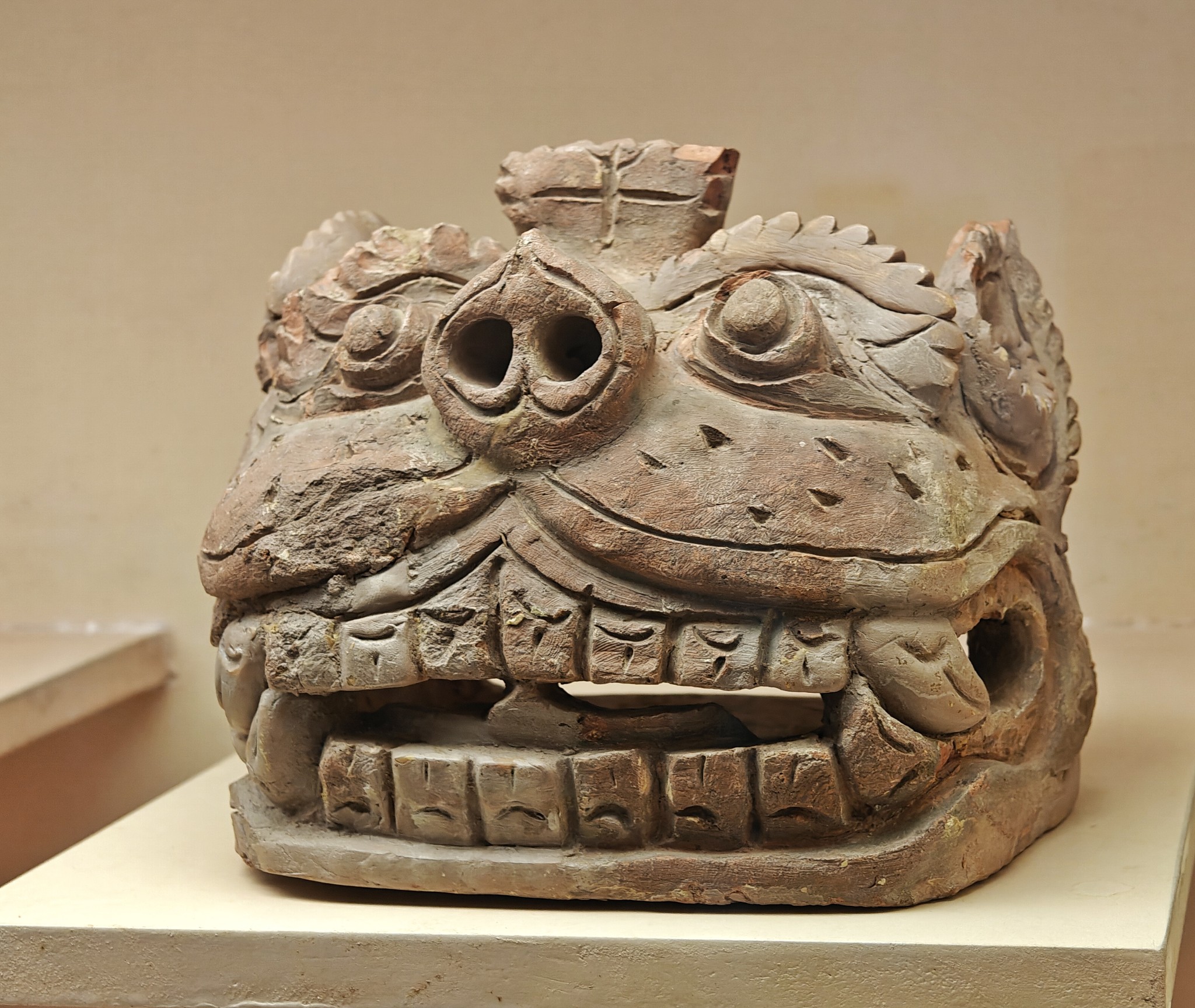 đầu linh thú bằng đất nung trang trí trên mái Hoàng thành Thăng Long thời Trần
