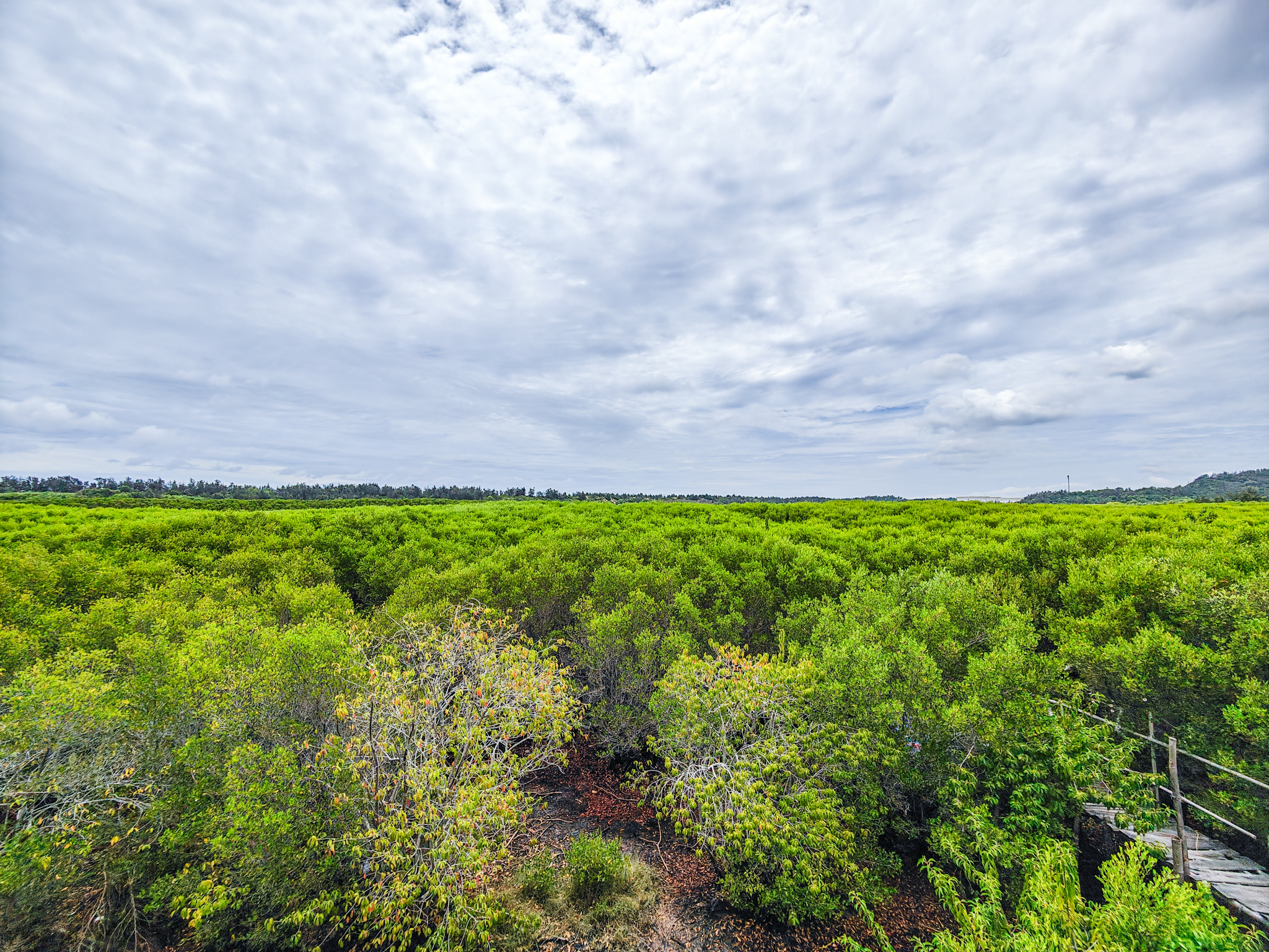 Dong thuyền thủng thẳng đi dạo trên Bàu trong một ngày nắng vừa đủ để đẹp nhưng không đủ để nắng, chú Hai vừa chỉ trỏ giới thiệu, vừa thong thả đẩy sào. Bàu có từ thời xưa, nhưng mới khai thác du lịch sinh thái và trải nghiệm được đôi năm. Mà làm du lịch thì phải bài bản, người ta bổ luống, kè gỗ giữ đất, trồng thêm những hàng cóc mới bên cạnh vùng rừng ngập mặn nguyên sinh. Thấy bảo có cả bên Nhật về hỗ trợ làm dự án, không biết sau này có kết hợp bán tín chỉ carbon không.