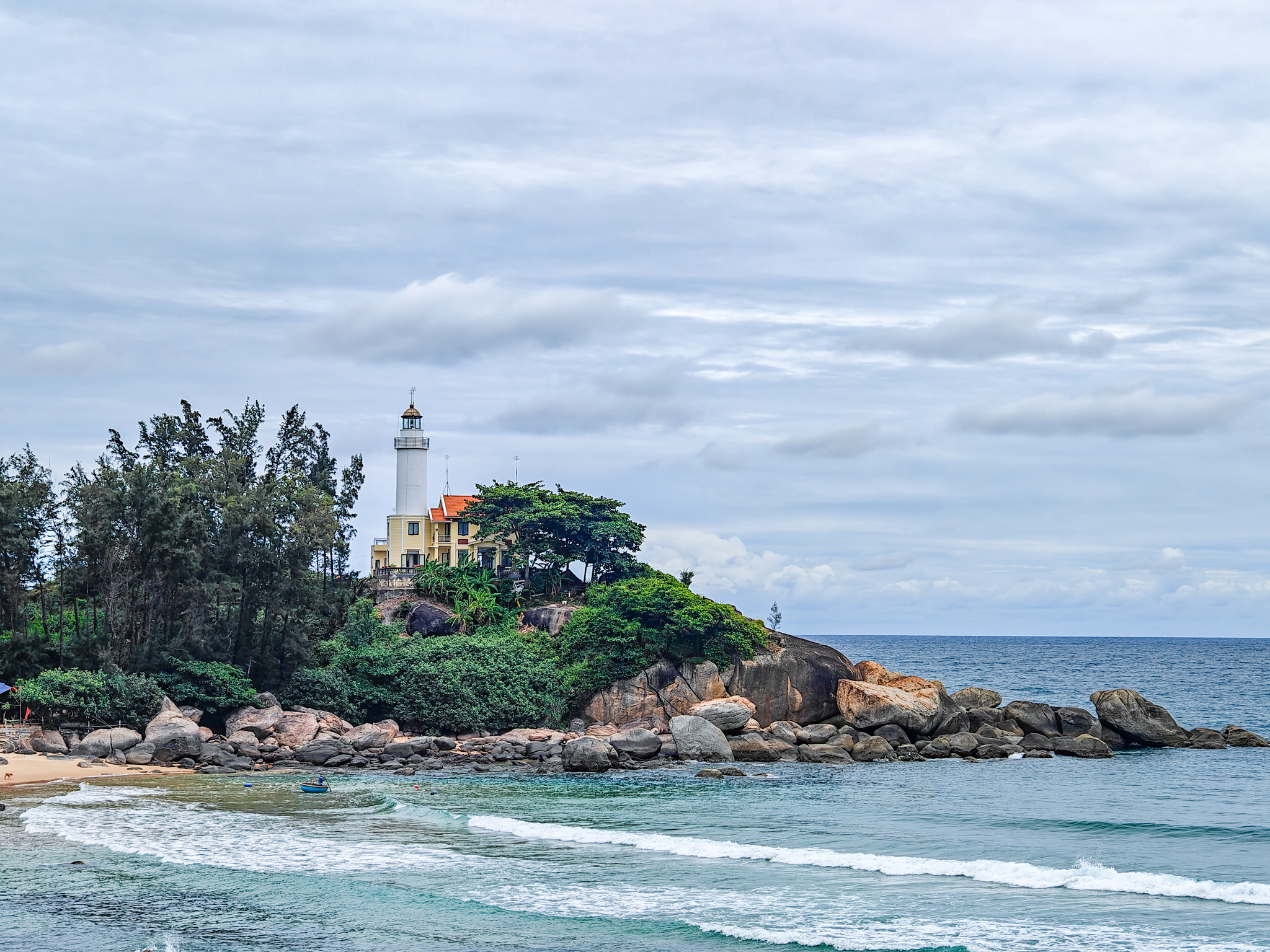 Để nói thêm về việc Dung Quất còn gì để đi, có lẽ phải thêm cả đèn biển Vạn Ca nữa cho đủ bộ. Lúc mình ở Bàu Cá Cái, chị chủ quán đã chỉ đi lên trên kia một tí có đèn biển đẹp lắm. Nó là ngọn hải đăng mới xây đâu đó đôi chục năm trên mũi đất nhô ra ngoài cảng Dung Quất, xét về tuổi đời chắc không đáng kể, tuổi đèn cũng chẳng có gì. Nhưng mình bị thu hút bởi những ngọn hải đăng bởi nó như biểu tượng của sự cô độc tỏa sáng.